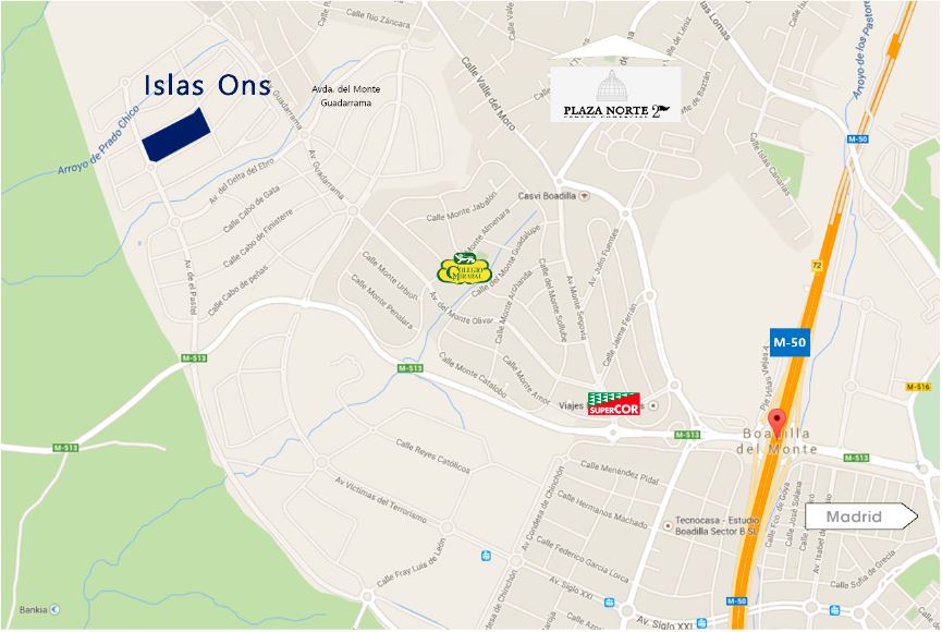 Islas Ons se encuentra en Boadilla del Monte, al noroeste de Madrid, un entorno privilegiado para vivir, con magnificas comunicaciones y equipamientos, zonas verdes y paisajes sorprendentes.